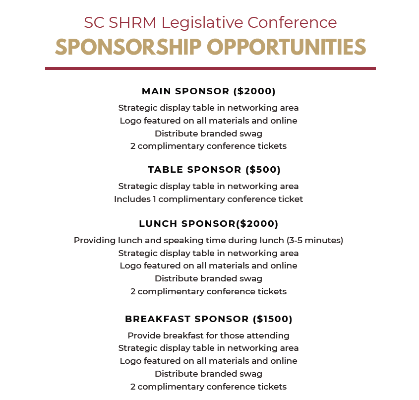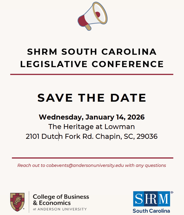 Mark your calendars! Our SC SHRM Legislative Day will be held on January 14 in Chapin, SC. We’re excited to announce that SC Attorney General Alan Wilson is confirmed as one of our speakers, with more high-profile speakers in the works. Stay tuned for additional details.